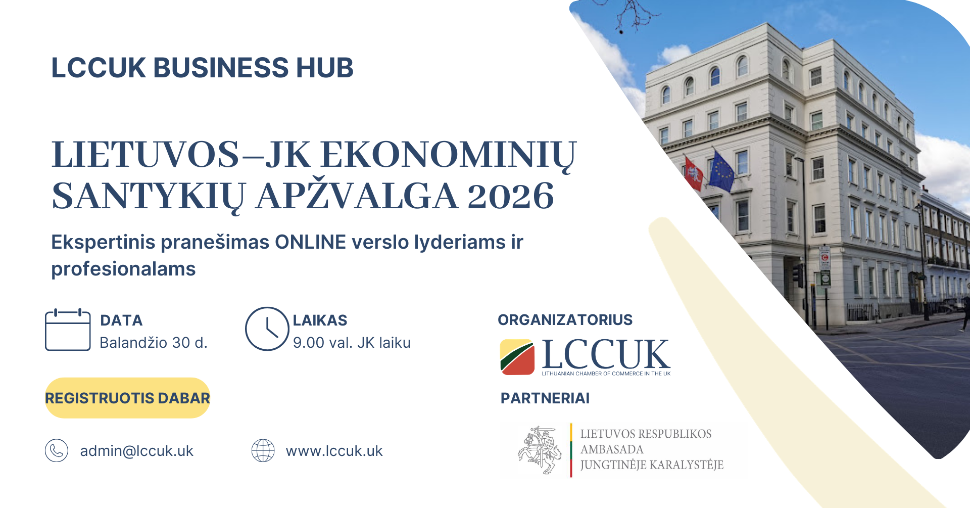 Pristatome LCCUK Business Hub informacinį renginį, skirtą verslo bendruomenei, vadovams ir profesionalams, kuriems aktualūs Lietuvos ir Jungtinės Karalystės ekonominiai ryšiai.